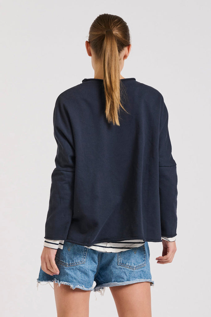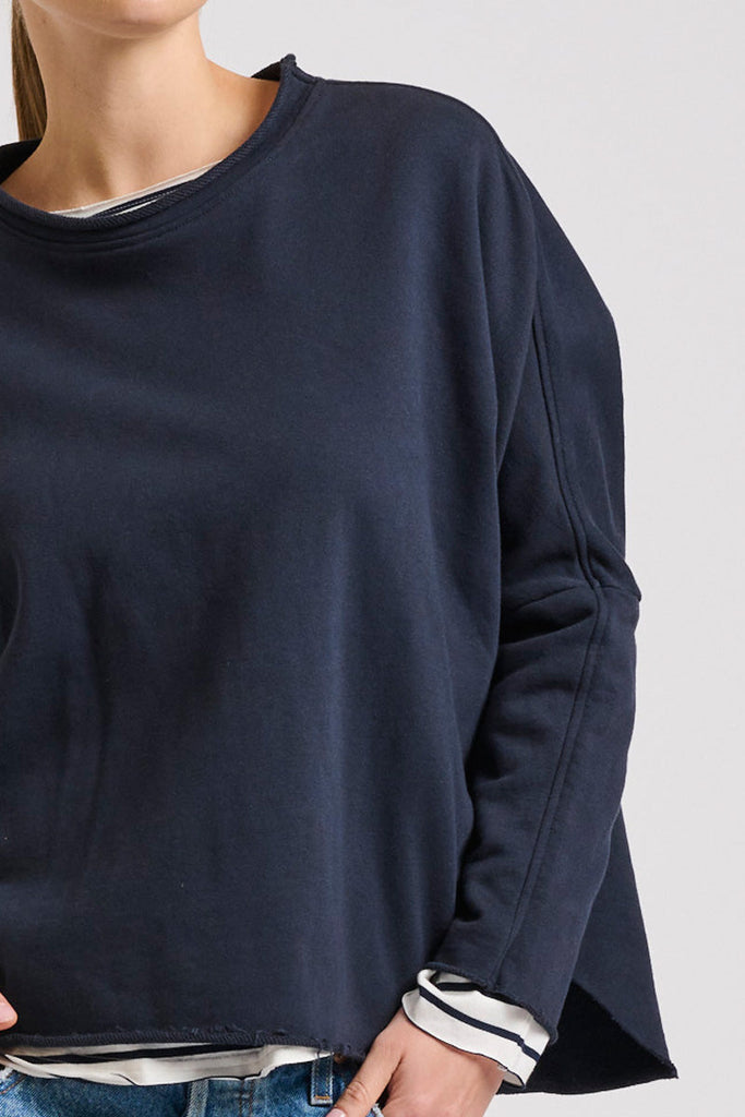 Raw Long Sleeve High-Low Sweatshirt - French Navy