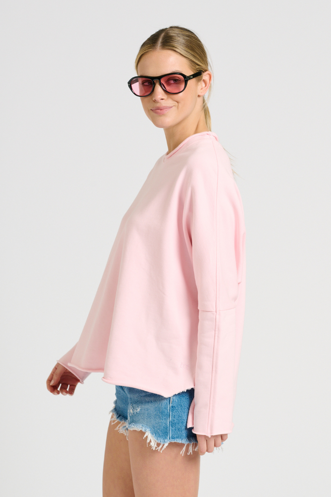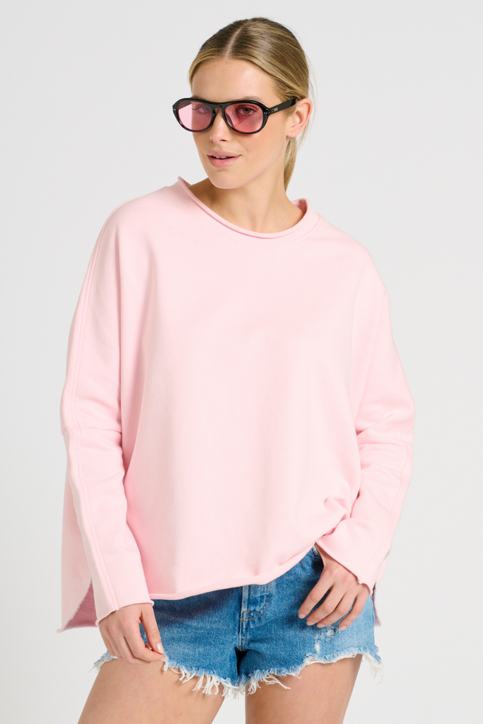 Raw Long Sleeve High-Low Sweatshirt - Pale Pink