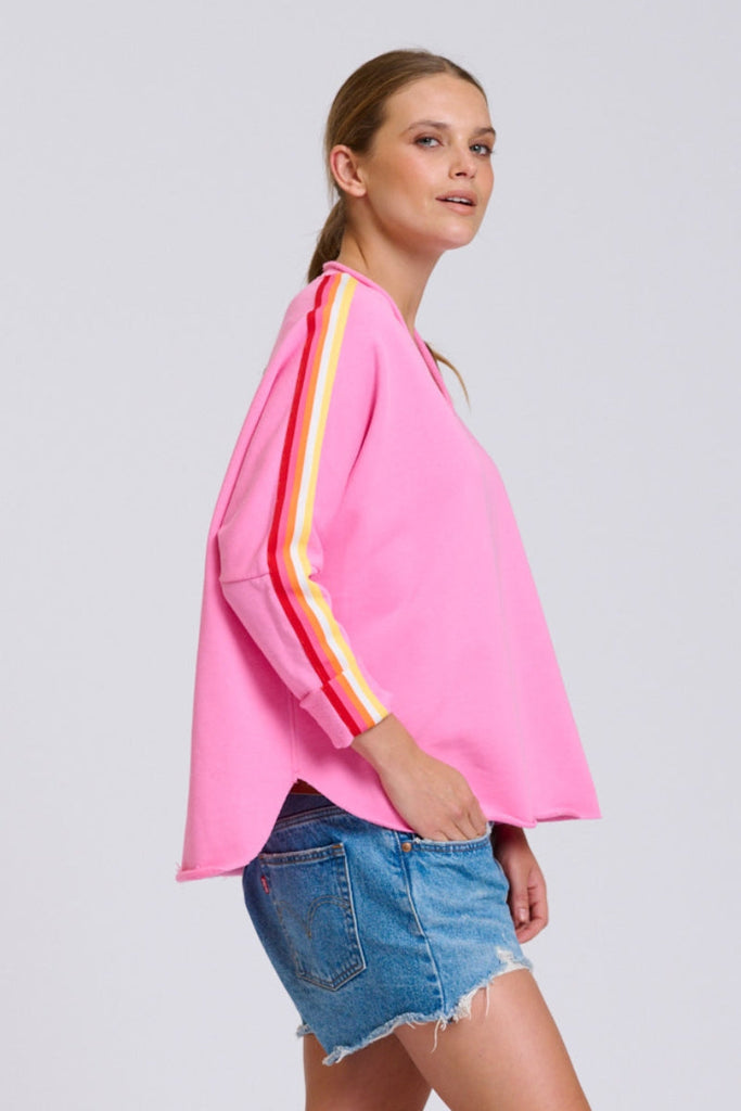 The Luna Oversized Long Line Shirt Dress - Pink Stripe Floral Trim