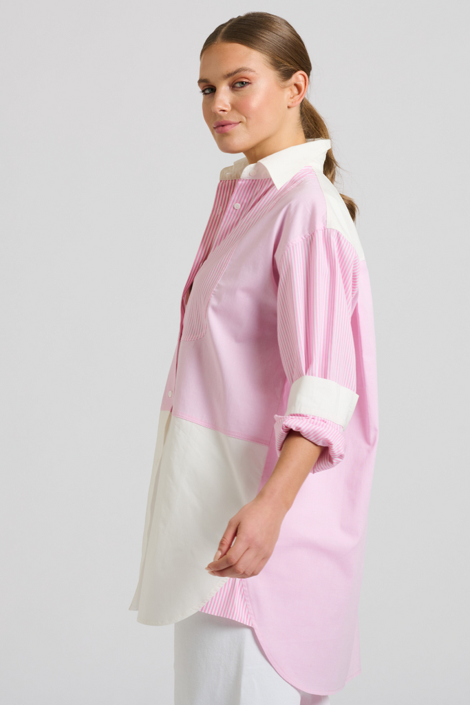 The Boyfriend Bib Oversized Shirt - Pink Combo