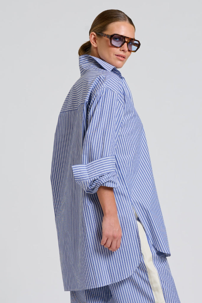 The Boyfriend Trim Oversized Shirt - Navy Stripe