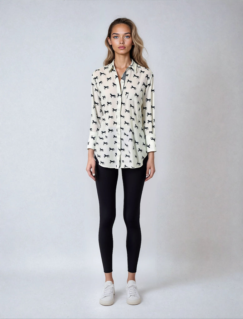 The Elodie Girlfriend Relaxed Shirt - White with Navy Pony Prance