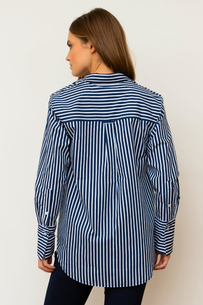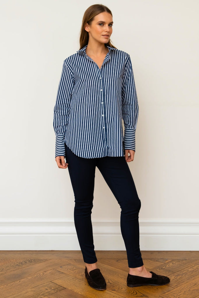 The Elodie Girlfriend Relaxed Shirt - Navy Thick Stripe