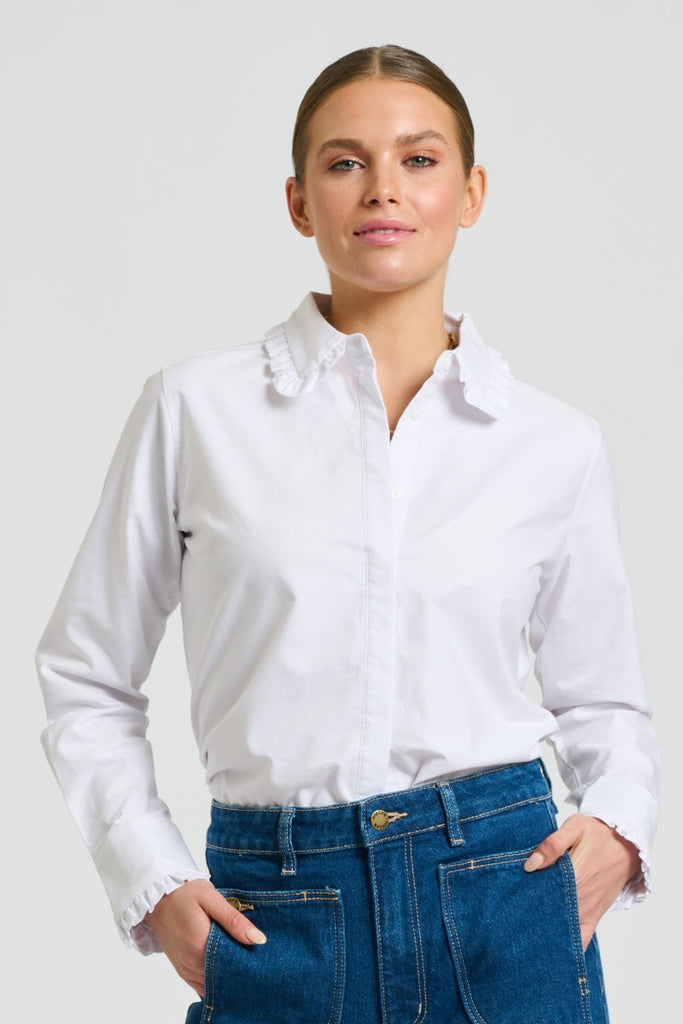 The Olivia Classic Cut Shirt Frill - Blue Oxford