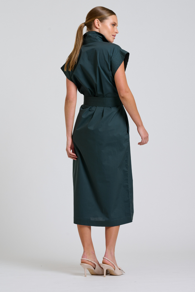 Fabulous Fifi, a gorgeous new silhouette, midi length, feature over stitched cap sleeves, placket and belt. Dress her up or dress her down, she's sophisticated and stylish. Crafted from 100% cotton.