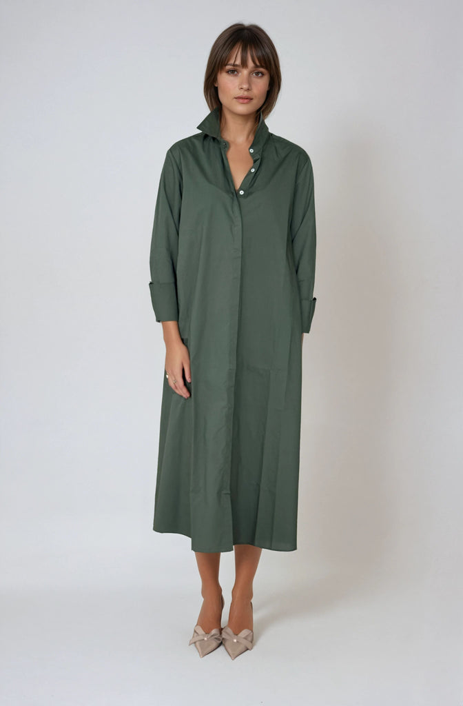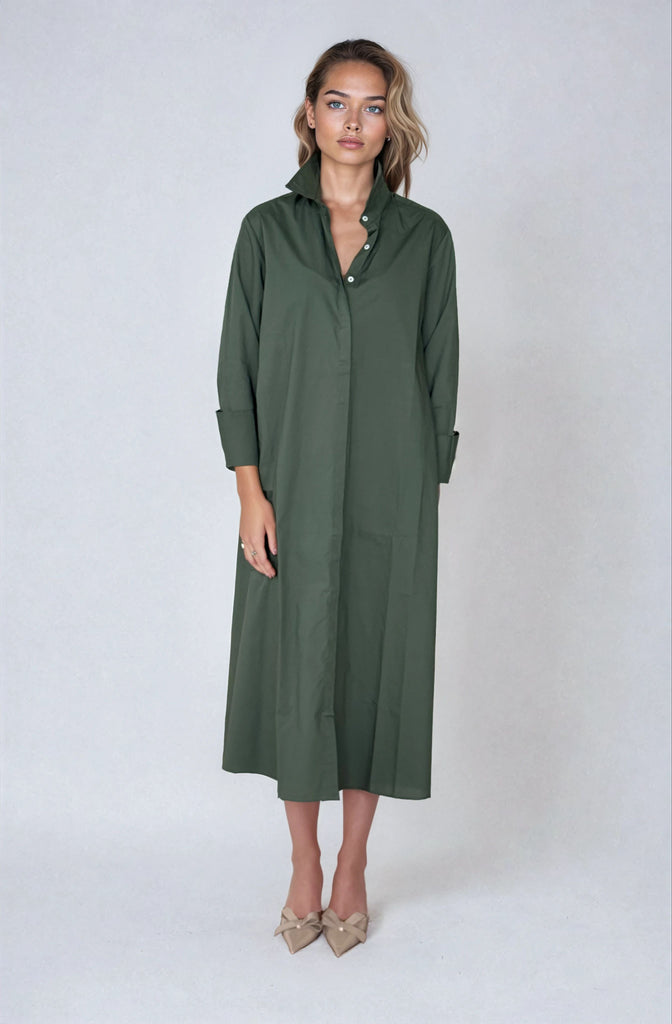 Amelie is the same silhouette as our very popular long line Luna dress, with a elegant French Cuff sleeve which you can wear down and buttoned or turned up for a chic look.