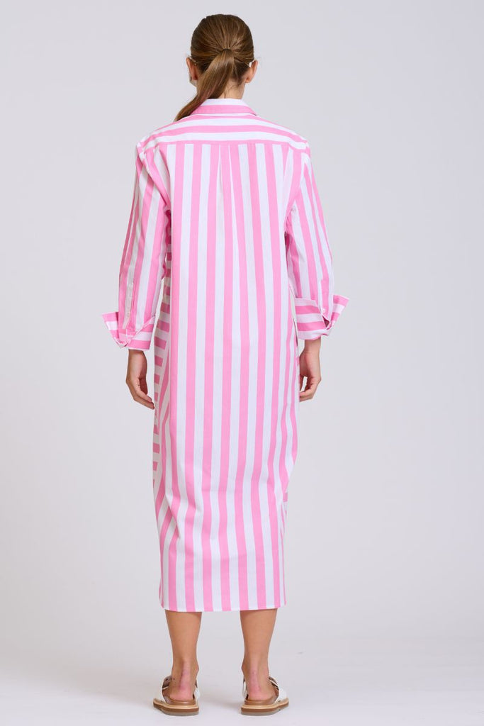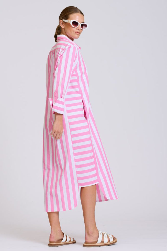 Introducing Andrea, a fresh and bold new addition to our coveted shirtdress collection. Andrea is crafted from 100% cotton wide stripes, featuring detailed placket, French cuffs and flattering side panels.