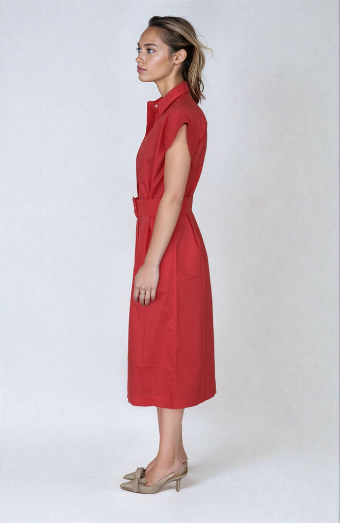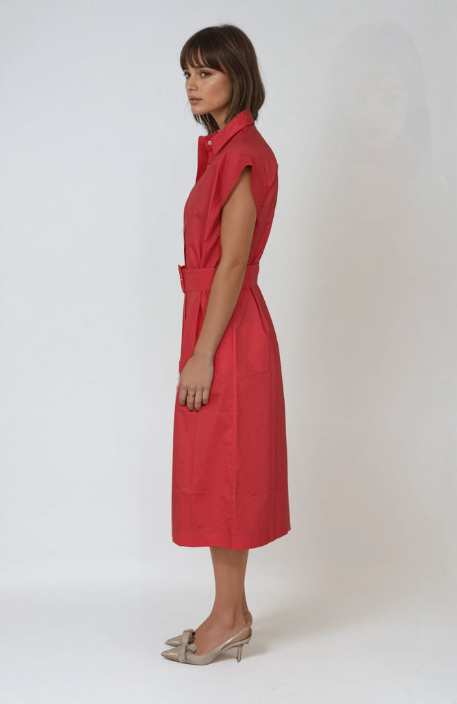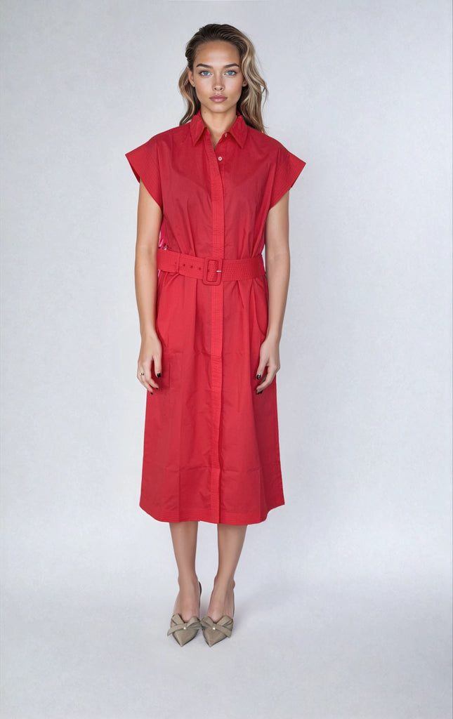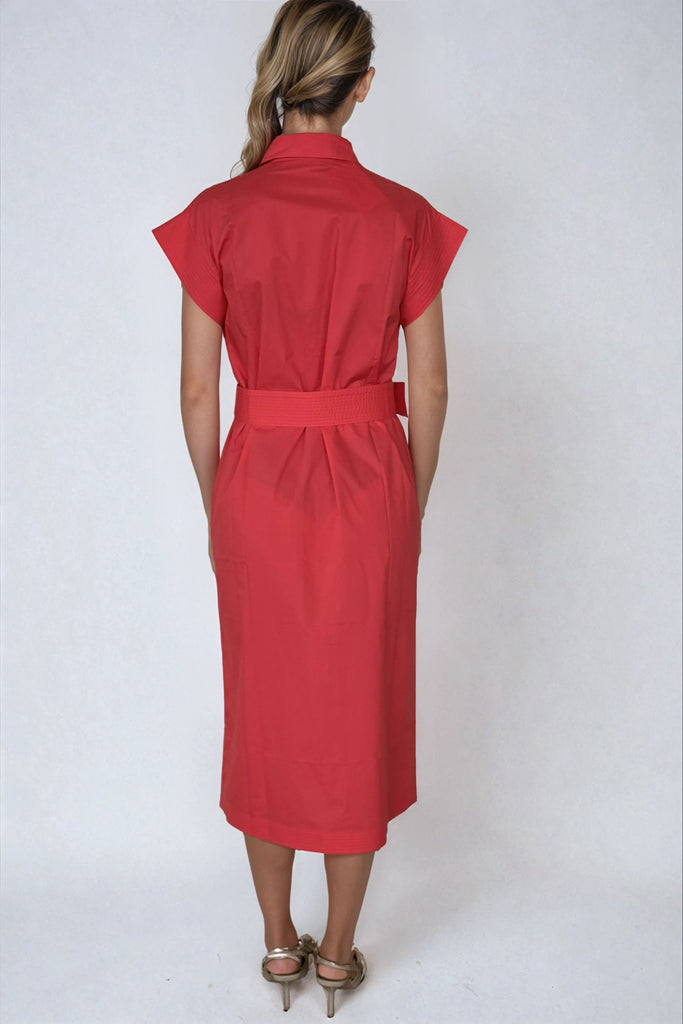 Fabulous Fifi, a gorgeous new silhouette, midi length, feature over stitched cap sleeves, placket and belt. Dress her up or dress her down, she's sophisticated and stylish. Crafted from 100% cotton.