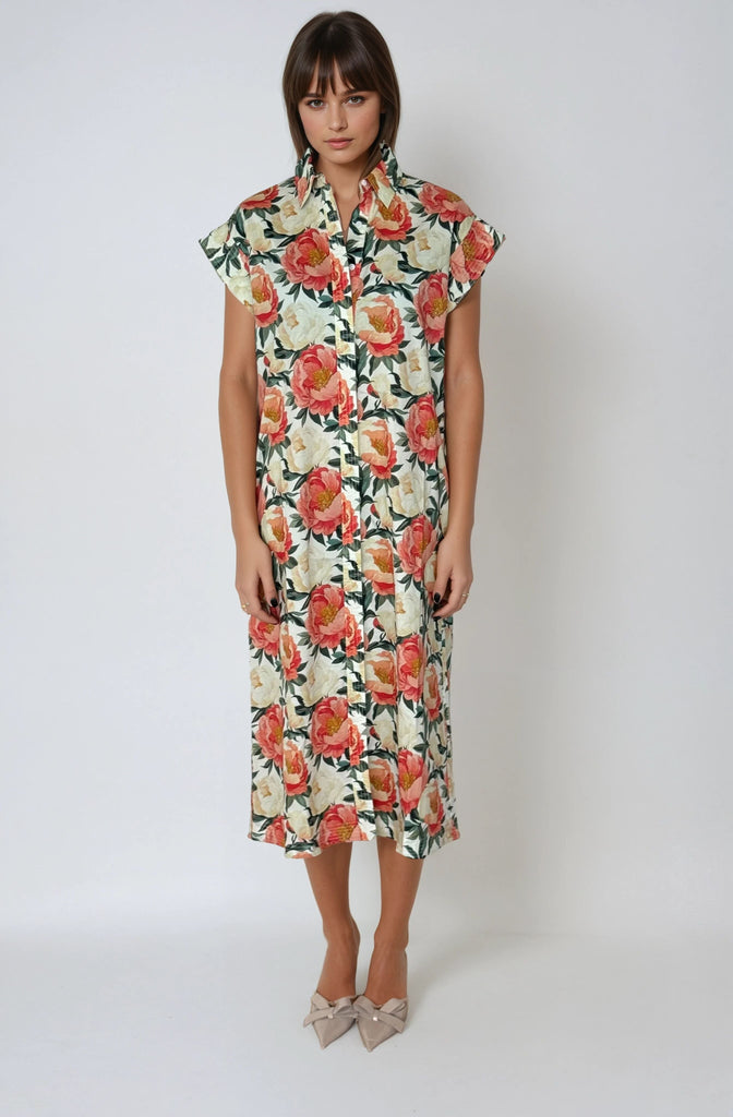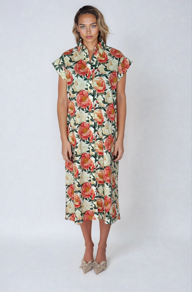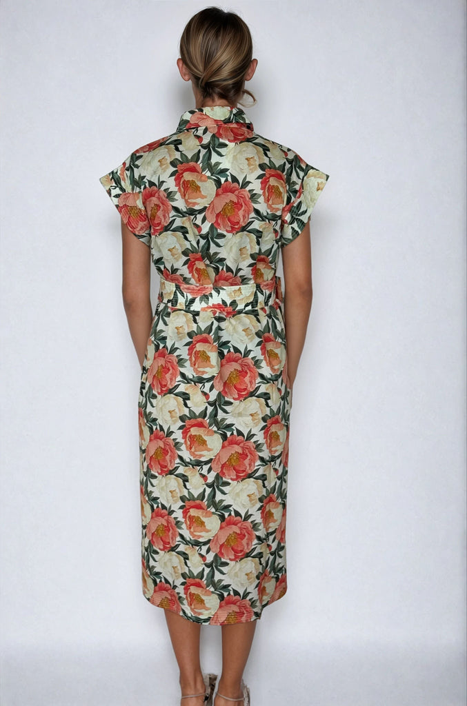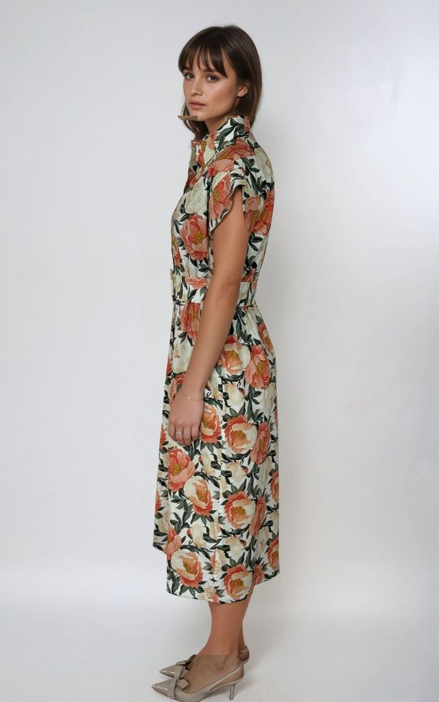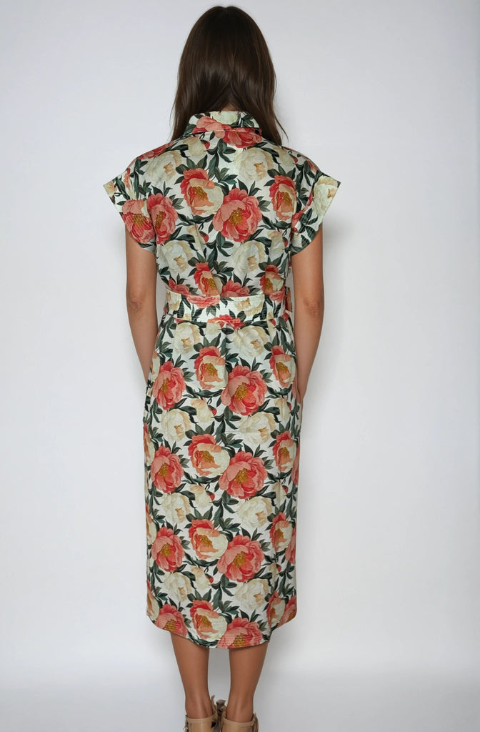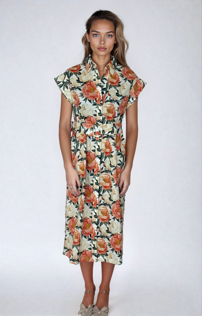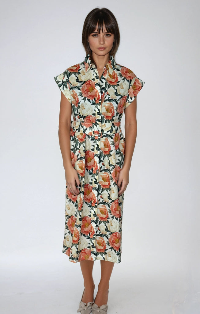 Fabulous Fifi, a gorgeous new silhouette, midi length, feature over stitched cap sleeves, placket and belt. Dress her up or dress her down, she's sophisticated and stylish. Crafted from 100% cotton.